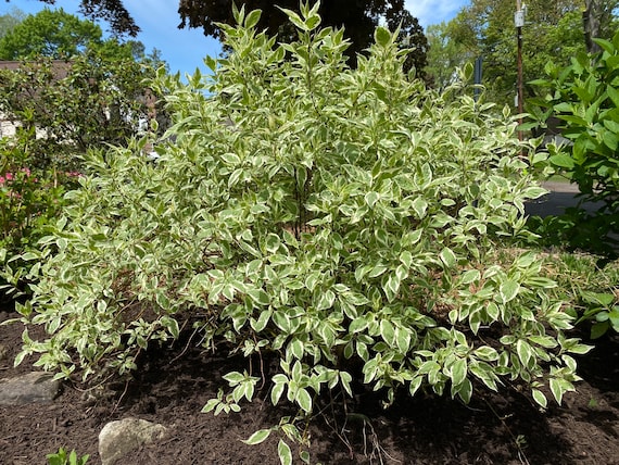 The Ivory Halo Dogwood is a stunning shrub known for its striking white-edged green leaves and vibrant red stems. In spring, it blooms with clusters of white flowers, followed by attractive white berries in summer. Its compact, rounded form makes it perfect for borders, hedges, or as a focal point in your garden. This hardy shrub thrives in full sun to partial shade and adapts well to various soil types. With its year-round appeal, the Ivory Halo Dogwood adds both beauty and structure to any landscape.